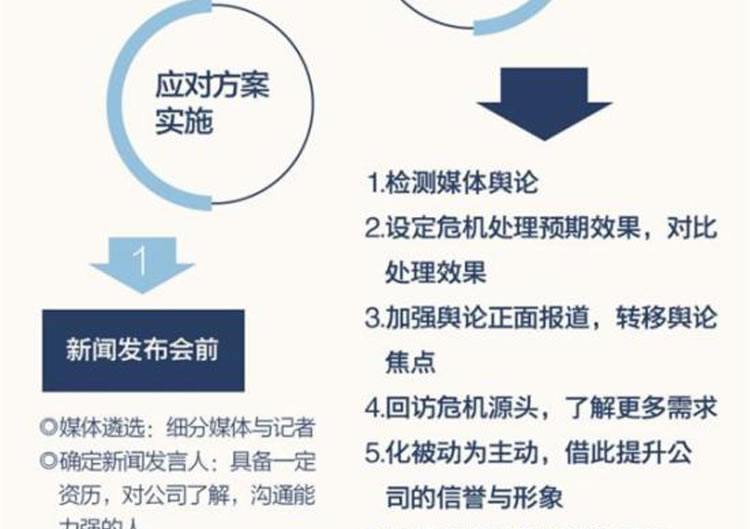 处在危机的敏感时期,新闻发布会的成功娱尤为关键,稍有差错,将会给公司带来更大的不利影响。反复推敲细节,进行特别演练。保证新闻发布会万无一失。