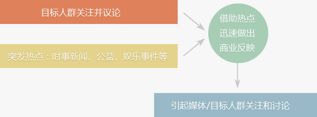 热点营销其实就是一种"借势营销",是指企业及时地抓住广受关注的社会新闻、事件以及人物的明星效应等,结合企业或产品在传播上达到一定高度而展开的一系 列相关活动。从营销的角度而言,是通过一个优质的外部环境来构建良好的营销环境,以达到我们需要推广的目的的营销方式。