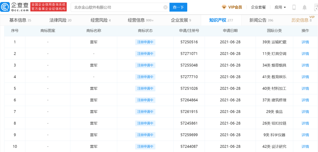 金山软件申请“雷军”商标,这名字有点厉害