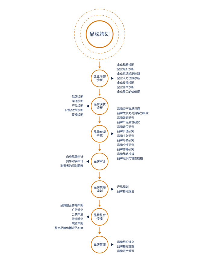 践品牌磁场体系,对企业实施精准的定位,聚合品牌独特的优势能量,高效地贯彻执行,以系统的、整体的运作,为企业提供贯穿咨询到传播的全程品牌营销智囊整合服务,实现企业品牌近、中、远三阶段的不同远景。