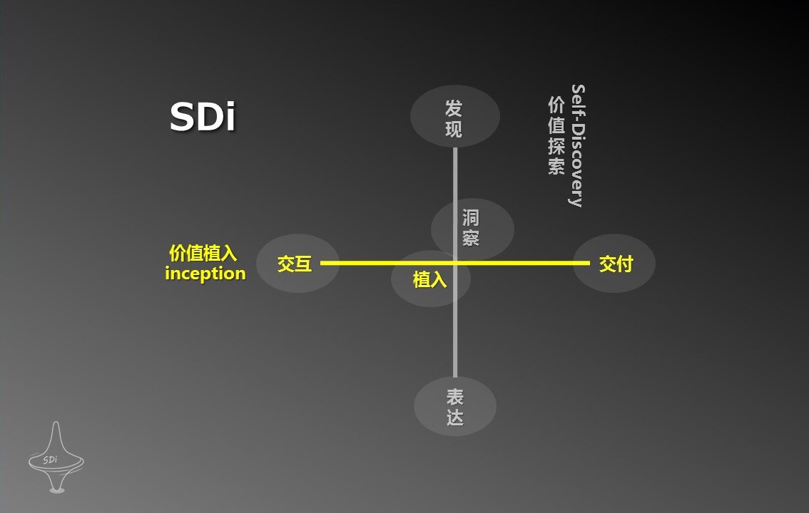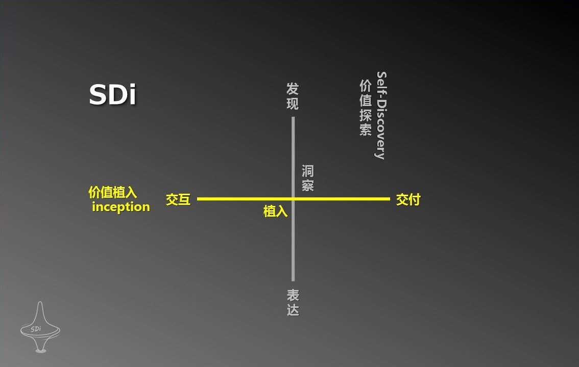 要创新用户价值,你要做Self-discovery(价值探索);要创建用户认知,你要做inception(价值植入)。至于SDi结构图中的6要素,无非是这两方面的进一步细化。