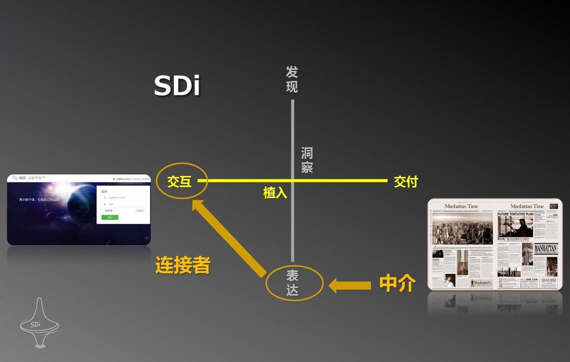 品牌与用户沟通需要一个场所,即沟通触点。新媒体为企业建立沟通触点提供了机会。从SDi的视角看,新媒体与传统媒体最本质的区别在于传统媒体是“中介”,它为企业提供的是基于广告的“代理表达”服务;而新媒体则是“连接者”,它不仅是“表达”平台更是品牌的沟通、服务平台。