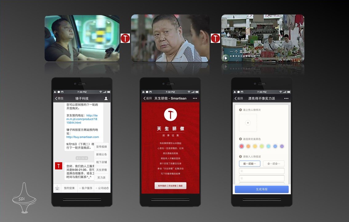 锤子手机的广告,以及配套交互设计(让用户撰写“天生骄傲”故事,参与“漂亮得不像实力派”海报设计),让我们瞥见了单纯强调目标消费者和过度以销售为导向的做法的狭隘。