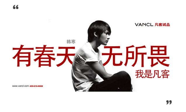 还有,当年的凡客通过“我是凡客”的文案,扭转了穿低价服装的负面形象——我穿低价服装,不是因为我没钱,而是因为我有一颗平凡心,不追求面子,我是凡客,像韩寒一样。