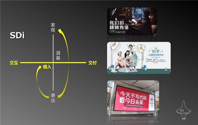从SDi的观点来看,品牌总是处于这样一条从“价值探索”到“价值延伸”的价值线循环当中,像是开关的两面,非此即彼。随着行业竞争加剧和趋势变化,品牌在不同的发展周期需要重新进行自我价值的探索(Self-Discovery),然后将新取得的价值发现植入到用户心智当中去(inception)。这就是品牌市场营销工作的一个完整的单次循环。知乎发展至今,与豆瓣一样,随着行业竞争加剧,又来到了一个需要重新思考其“价值发现”的时间窗口。在豆瓣,“我们的精神角落”是该品牌新一轮Self-Discovery之后的价值发现。这意味着,类似陌陌和贴吧那种“吃饭K歌打麻将”甚至“寻求志趣相投的朋友”等浅层社交已被战略舍弃,豆瓣全新的价值发现围绕着“成为用户精神世界的乌托邦”,以及将该品牌定位于一个满足用户情感与精神需求的产品与服务的提供者。那么这个问题,抛给知乎又当如何呢?从一个旁观者的视角看,宇见认为,知乎的Self-Discovery还应该落回到对这个“知”字的分析之上。“知”是知乎的重要基因、创业源点与初心所在,对“知”的持续思考将有助于该品牌重新明确价值发现。